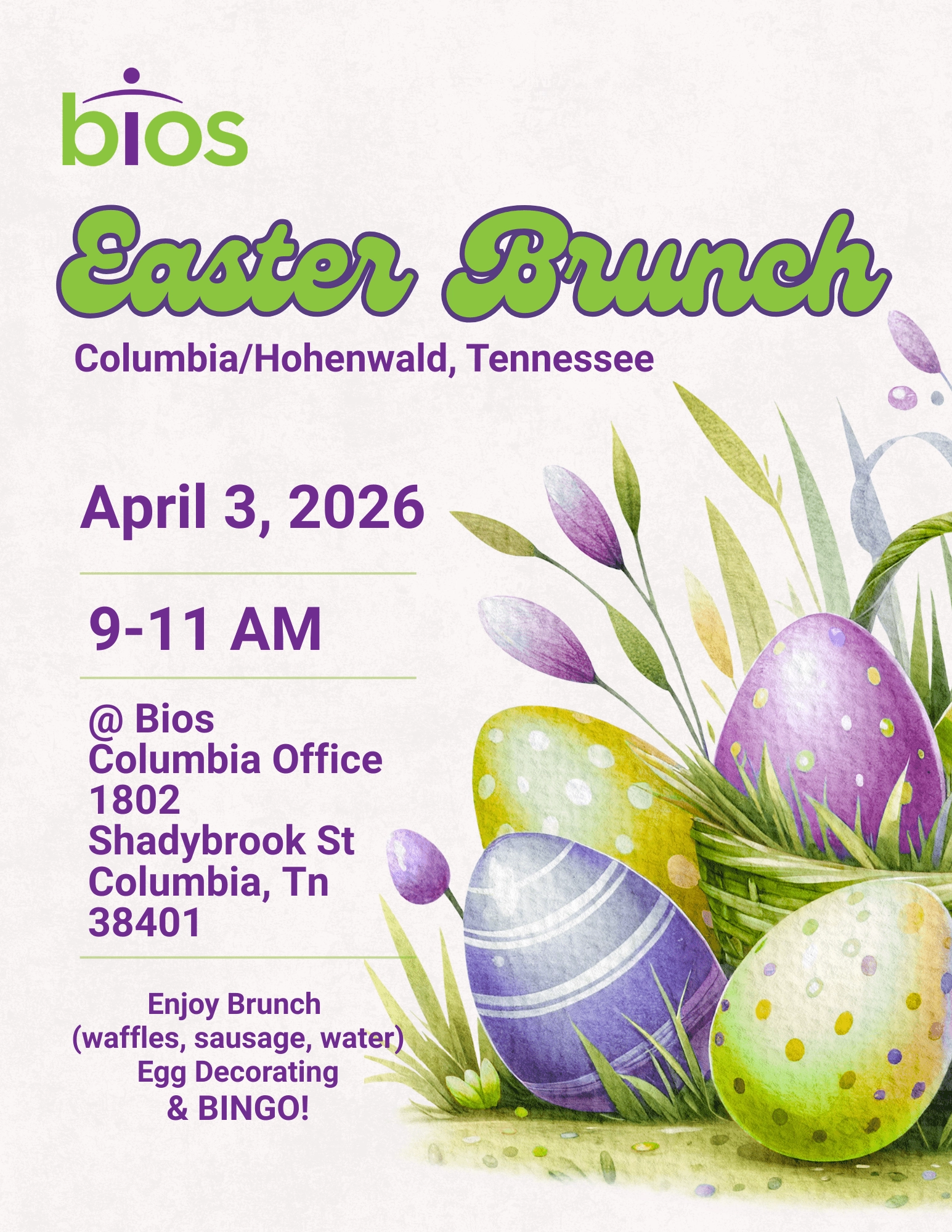 « All Events Columbia, TN Bios Easter Brunch April 3 @ 9:00 am - 11:00 am « Madison, TN Bios Easter Brunch Add to calendar Google Calendar iCalendar Outlook 365 Outlook Live Details Date: April 3 Time: 9:00 am - 11:00 am Venue Bios Columbia Office 1802 Shady Brook St. COLUMBIA, TN 38401 United States + Google Map